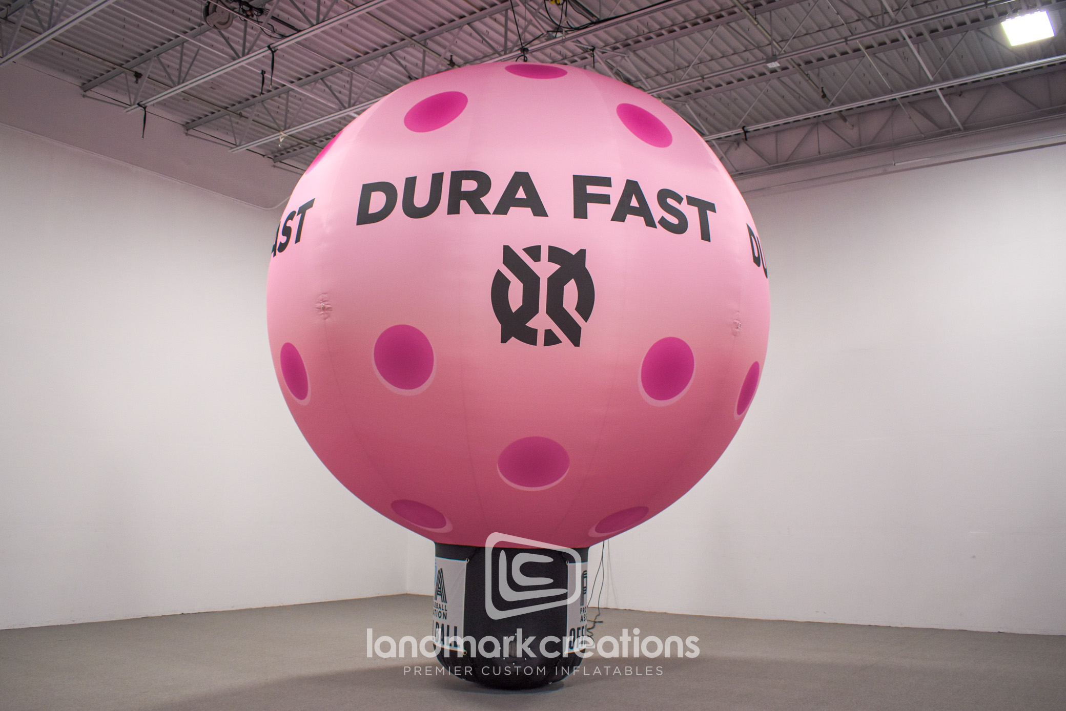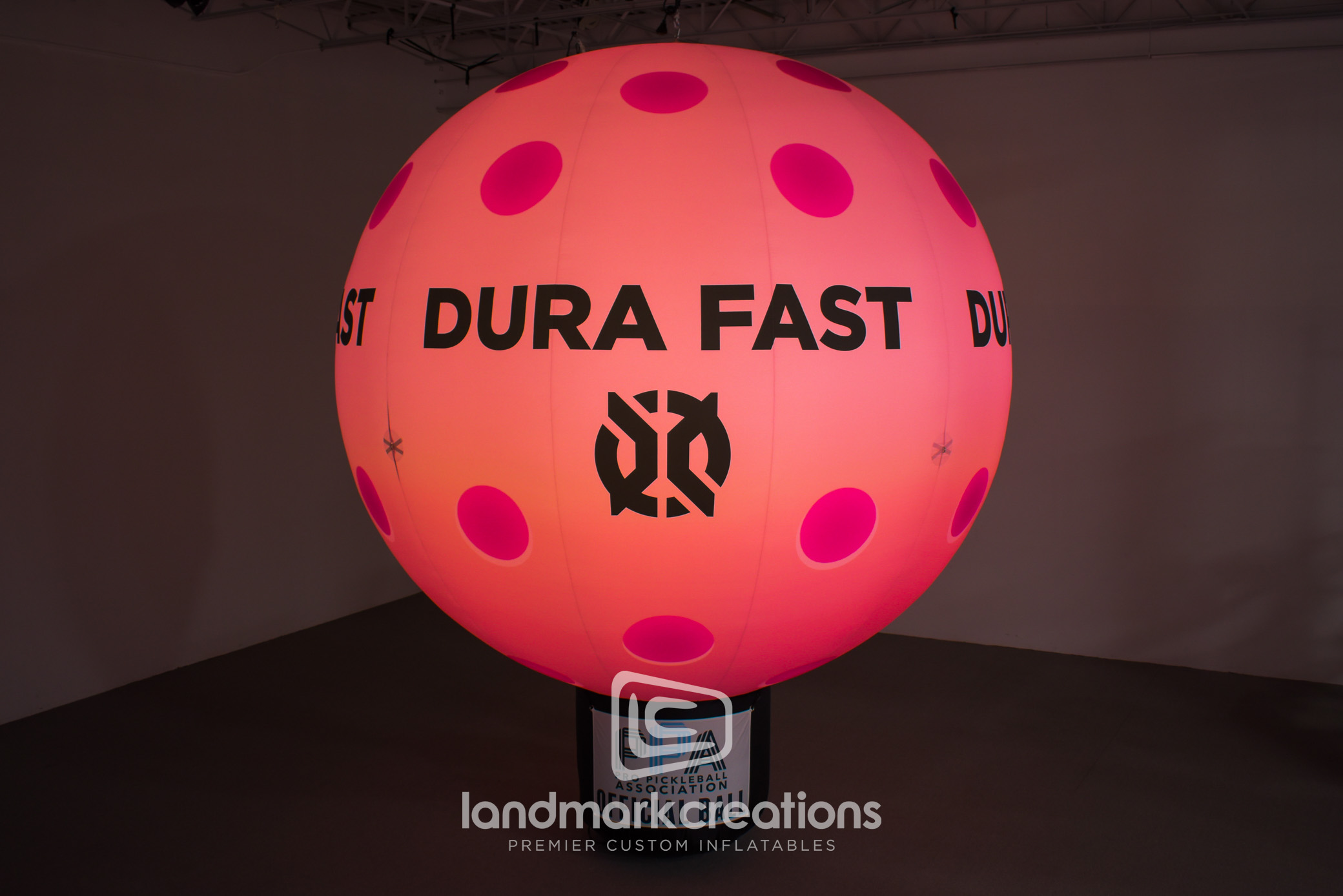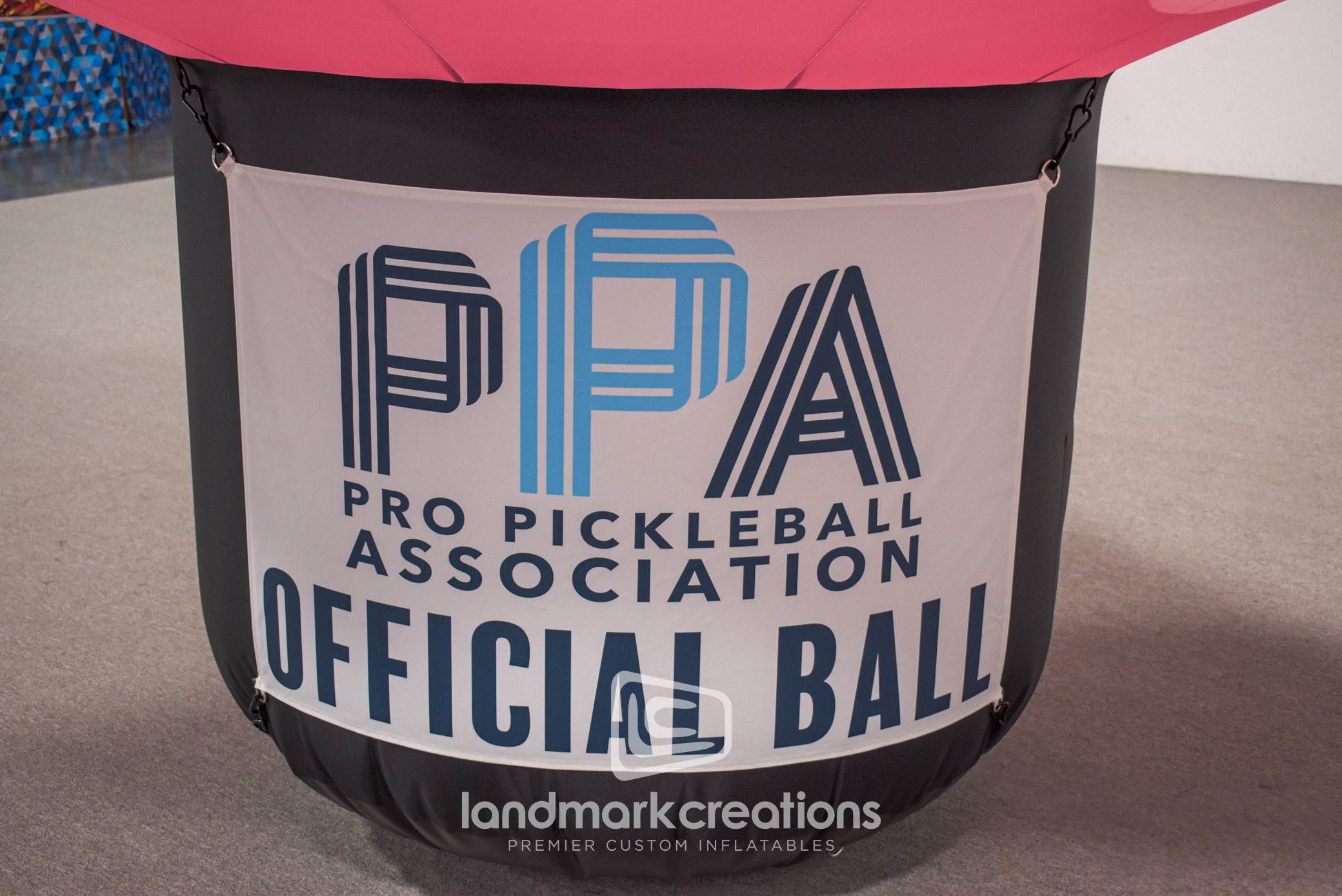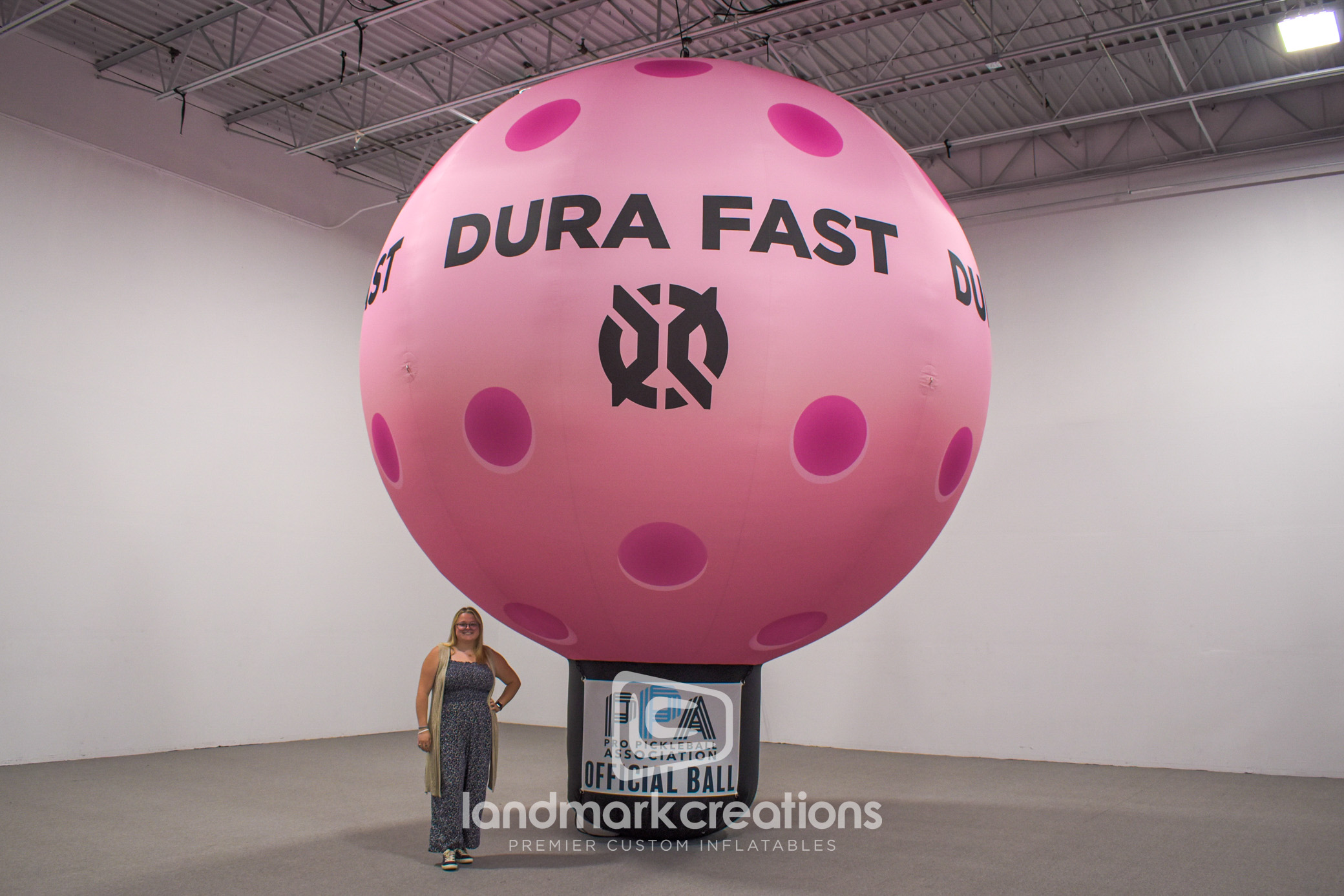 Landmark Creations partnered with Escalade Sports to craft a striking 18-foot inflatable replica of the Dura Fast Pink Pickleball. This custom-designed inflatable serves as a dynamic centerpiece for sponsorship events, effectively enhancing brand visibility and engaging audiences. Its versatile indoor/outdoor design and innovative cylinder base with customizable banners make it an ideal choice for sporting events and promotional activities.