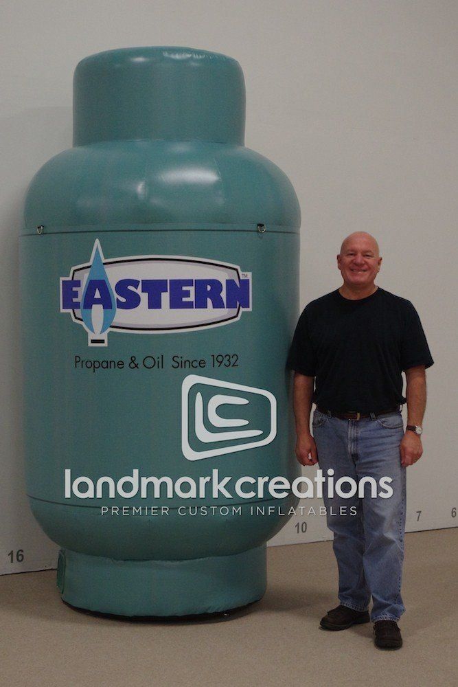 Inflatable product replicas, like this propane tank for Eastern Propane and Oil, are a creative way to advertise at trade shows, community events and open houses.