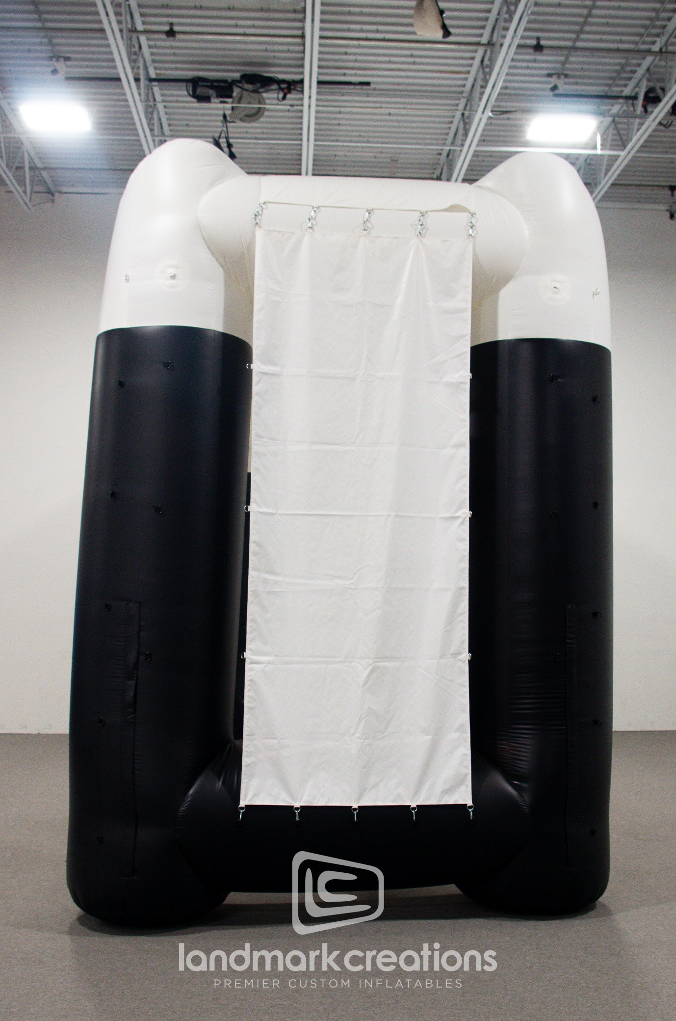 This giant inflatable double archway is used at Energy City Race Events. The top of the arch is a white fabric and includes multiple attachment points allowing maximum flexibility to display various event and sponsorship banners.