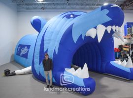 Etowah High School uses their custom inflatable football helmet to create excitement and boost school spirit at events. The inflatable helmet features the Etowah Eagles logo on each side, and includes large banner space on entrance tunnel for school sposors or custom messaging.