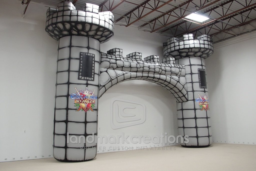 This custom inflatable finish line was designed for the Excalibur 10 Miler event in Viera, Florida. The inflatable castle marked the finish line when Fair Sirs and Maidens completed the race. They then enjoyed a post-race crown and feast! What fun!