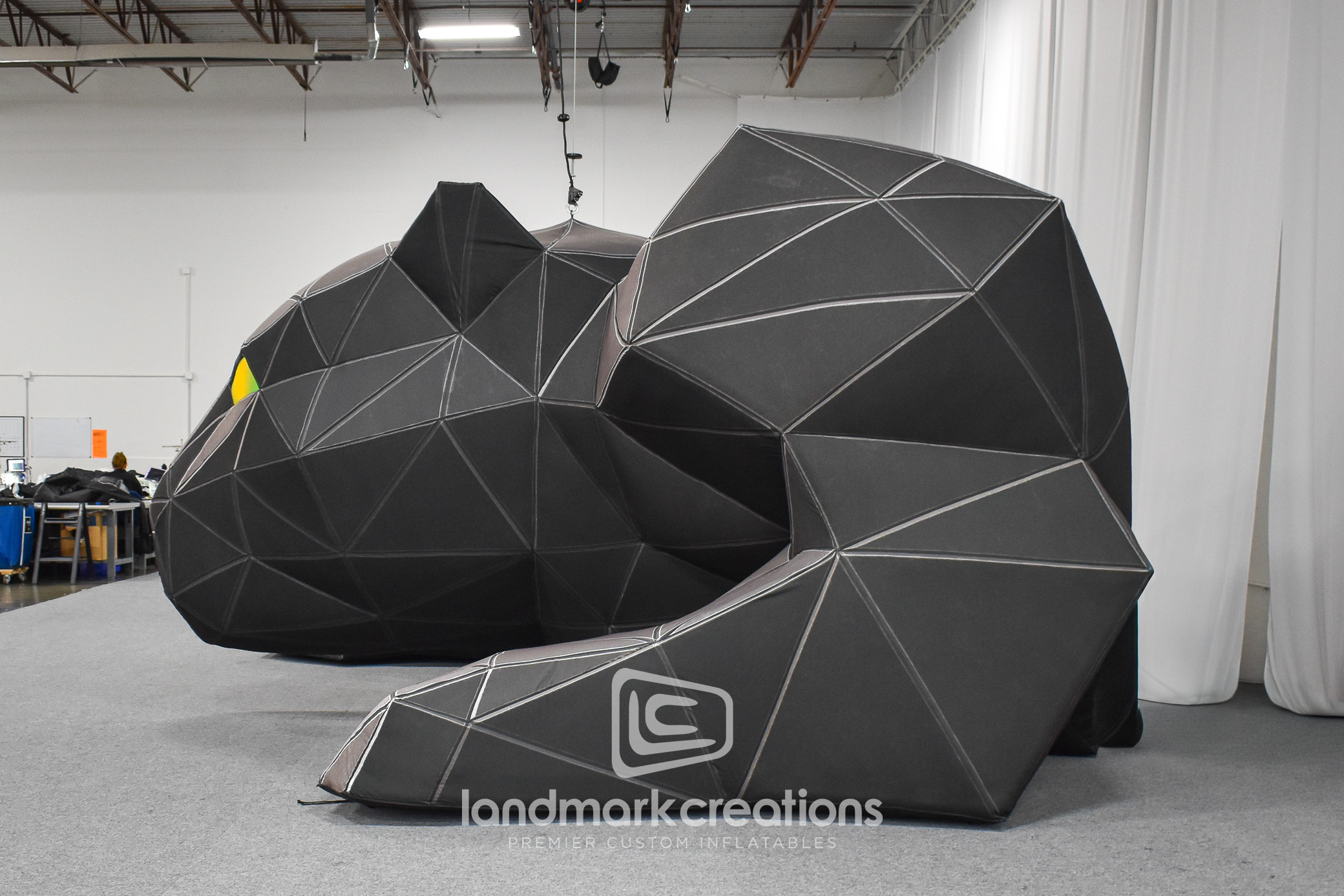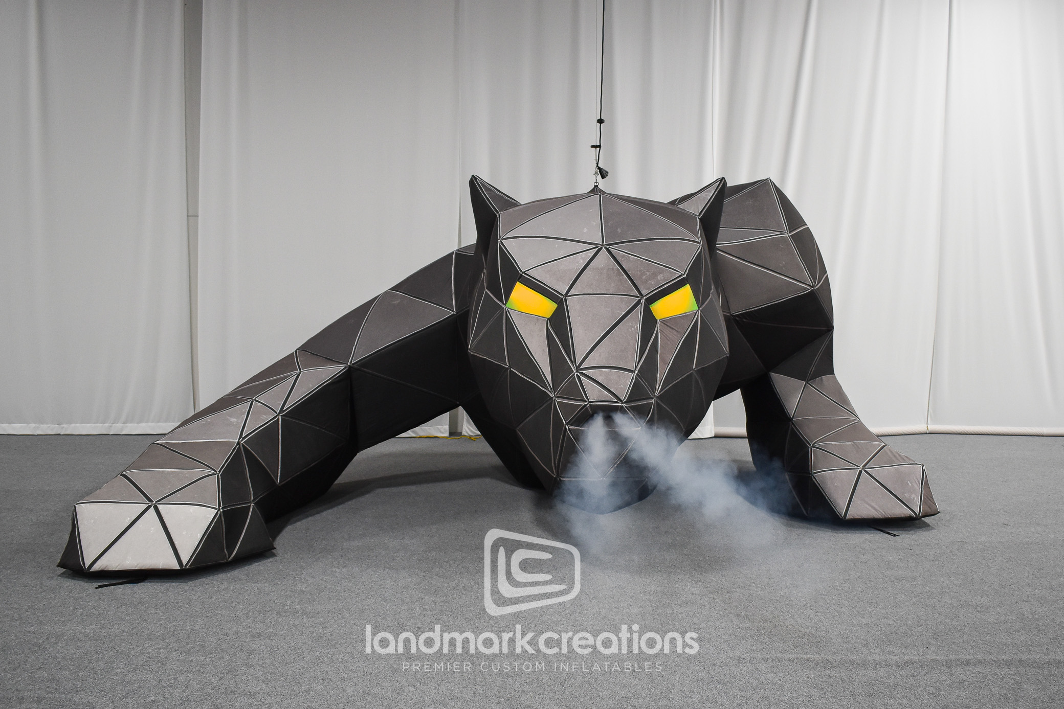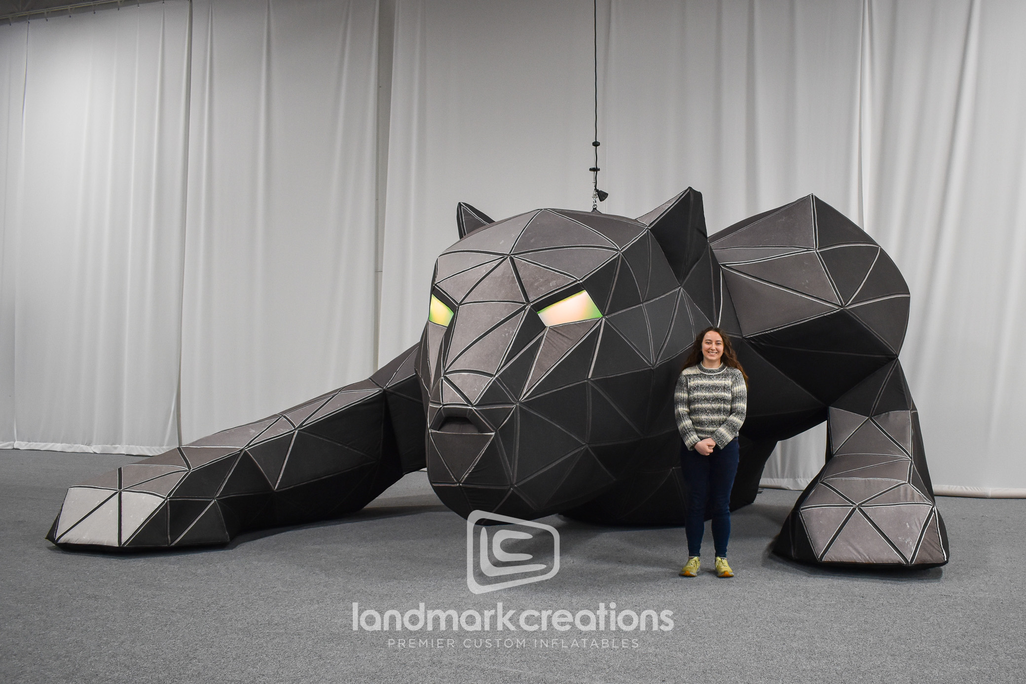 For Myke Towers’ La Pantera Negra world tour, Landmark Creations partnered with Garba Music Corp to bring his signature Black Panther persona to life. Standing 17 feet tall with a faceted design and glowing green LED eyes, this custom inflatable stage sculpture became a dramatic focal point during performances across Europe and beyond. Designed for portability and impact, the panther set the tone for an unforgettable concert experience while underscoring Towers’ creative vision.
