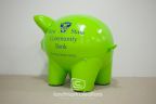 The First Community Piggy Bank is a charming inflatable designed to promote financial literacy and community savings programs. Its whimsical design attracts attendees, creating a memorable connection to financial education efforts at fairs and events.