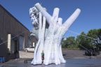 These custom inflatable sculptures are part of the Floating Museum’s installation ‘The Garden’, a collaboration with Kushala Vora featured at Expo Chicago 2023. ‘The Garden’ project is intended to start conversations and showcase performances about the movement of people and plants. The inflatable sculptures are designed to represent the role of plants in shaping the world and how they have affected ecological change, colonialism, capitalism, and violence. The project focuses on exploring the themes of diaspora, improvisation, and creating a space for musicians and performers. The sculpture and platform transform into a performance series at night, and docents engage the public during the day. The project aims to create a pluralistic approach to monumentality by blurring the lines between dialogic platform, sculpture, and performance. Learn more about this installation and all of the Floating Museum projects at https://floatingmuseum.org/