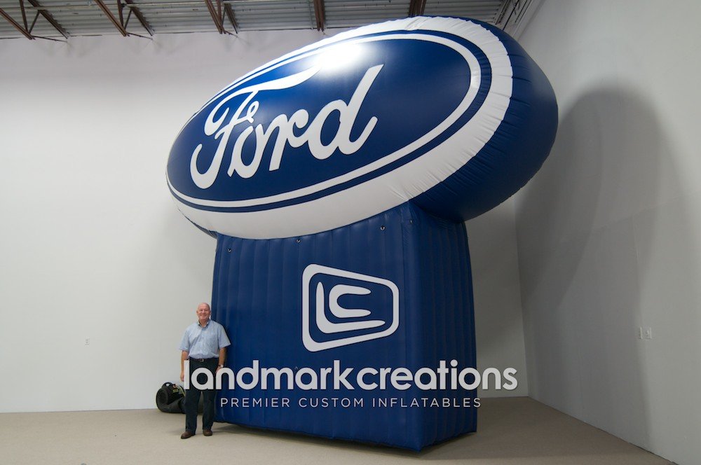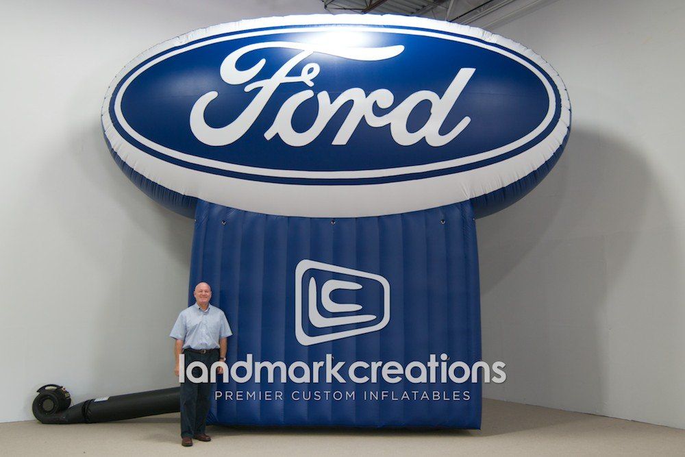 Mayaguez Ford uses their giant, oval-shaped inflatable sign to attract attention to their auto dealership. Passersby definitely don't overlook this 18-foot tall Ford logo.