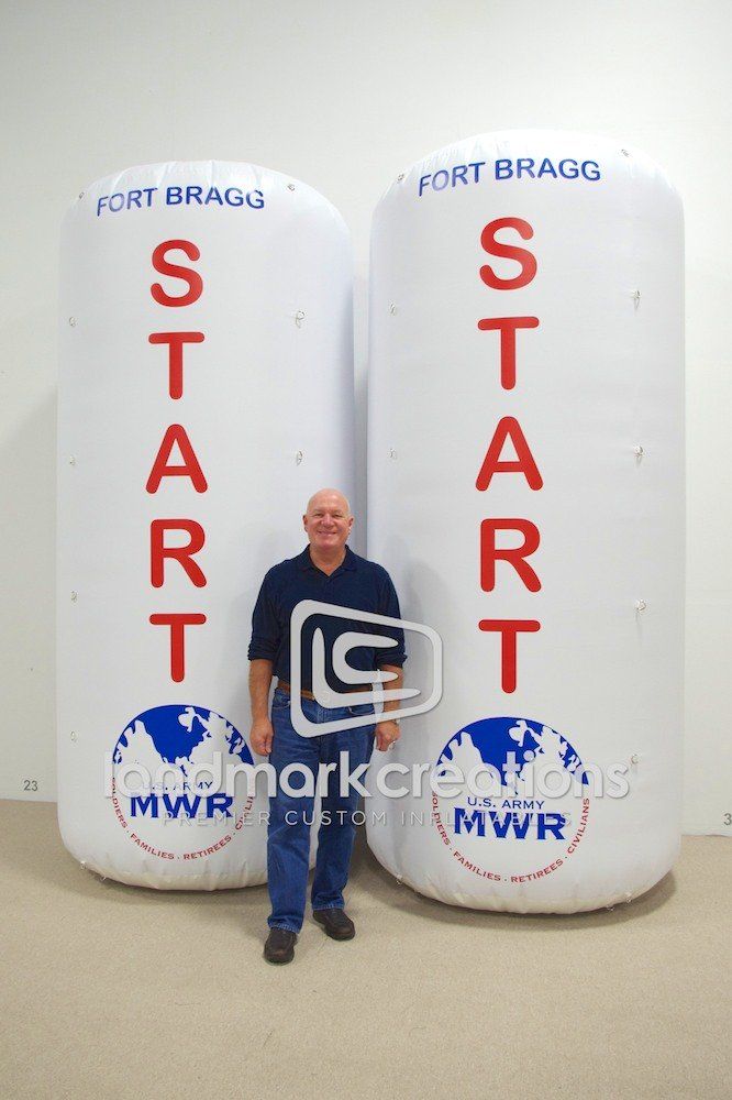 These 10-foot inflatable pylons for Fort Bragg Morale, Welfare, and Recreation will mark the starting line for charity events and community races including Run, Honor, Remember: a Fort Bragg 5K Walk/Run.