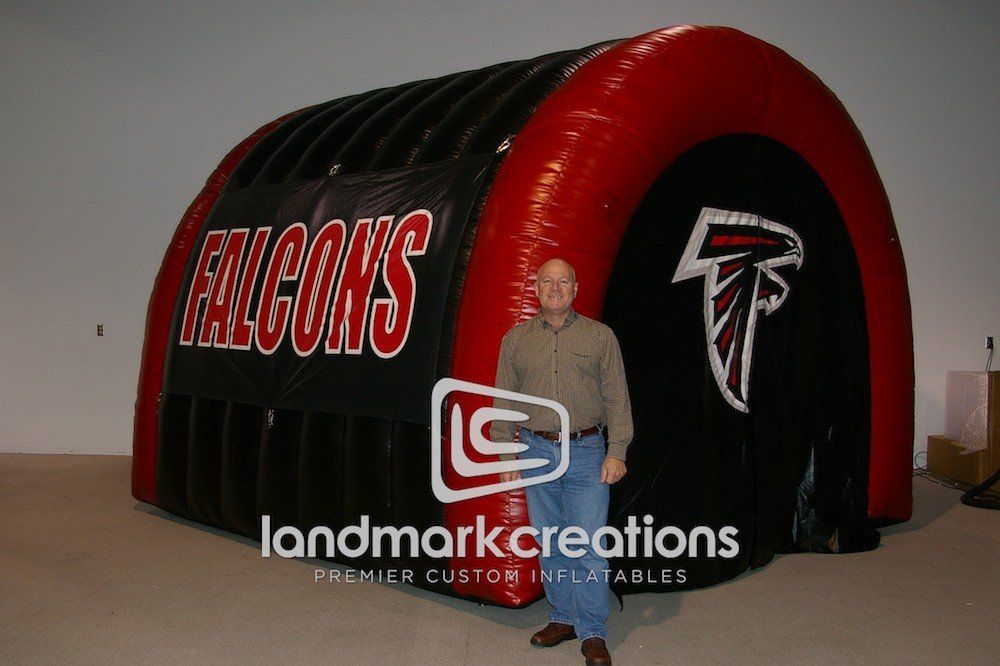 Youth sports association, Fort Worth Falcons, adds fun to playoff games and fundraisers by inflating this custom sports tunnel.