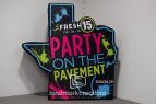 With its neon colors and Texas shape, BGC Racing’s custom inflatable billboard adds visual flare to their Party on the Pavement at the FRESH 15 race event.