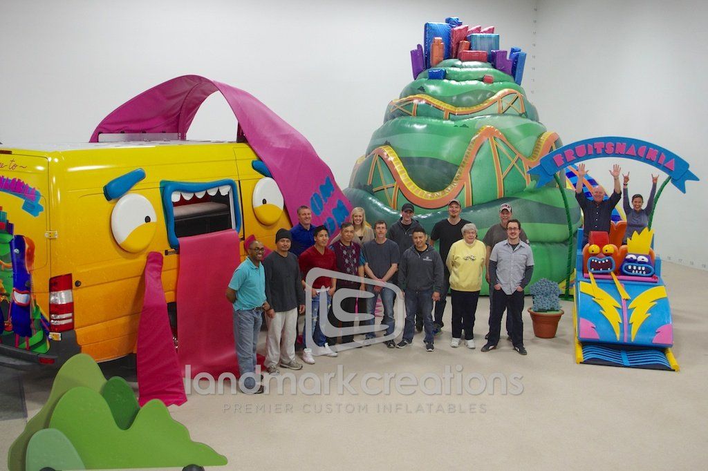 General Mills brought the world of Fruitsnackia, a gooey and gummy wonderland, to life with this inflatable cartoon mountain! The inflatable, along with food truck filled with fruit snacks and characters are used to attract attention during a 2014 summer tour.