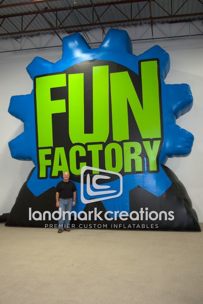 Fun Factory, a premier destination for great family fun and dining, places their giant inflatable logo on location rooftops to advertise their arcade games, go carts, bowling lanes and more!