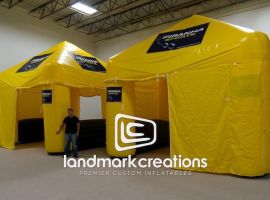 Giant inflatable gable tents can be used as an area for kids and adults to cool off during sporting events. Stock with tables, chairs and beverages for a relaxing area between sporting events or after races.