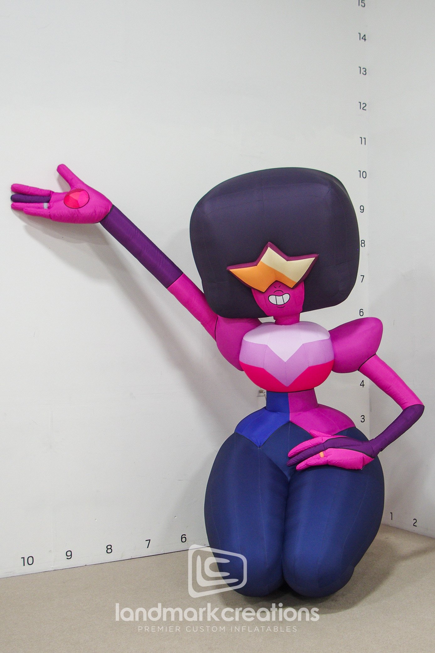 Cartoon Network featured a set of giant inflatable Steven Universe characters, including Garnet on top of their karaoke booth at Comic-Con to draw traffic and connect with fans of the television series. Giant custom inflatable mascots are proven performers for connecting with crowds at special events like trade shows, festivals, and corporate events. Because they pack small, they're also very easy to transport and store between events.