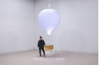 Hot air balloon shapes evoke a feeling of whimsy and adventure. The Syndicate Society created a set of geometric patterned inflatable hot air balloon replicas for use in event spaces. Inflatable shapes be created to hang or be free standing, including a variety of basket and internal lighting options for almost any brand or theme.