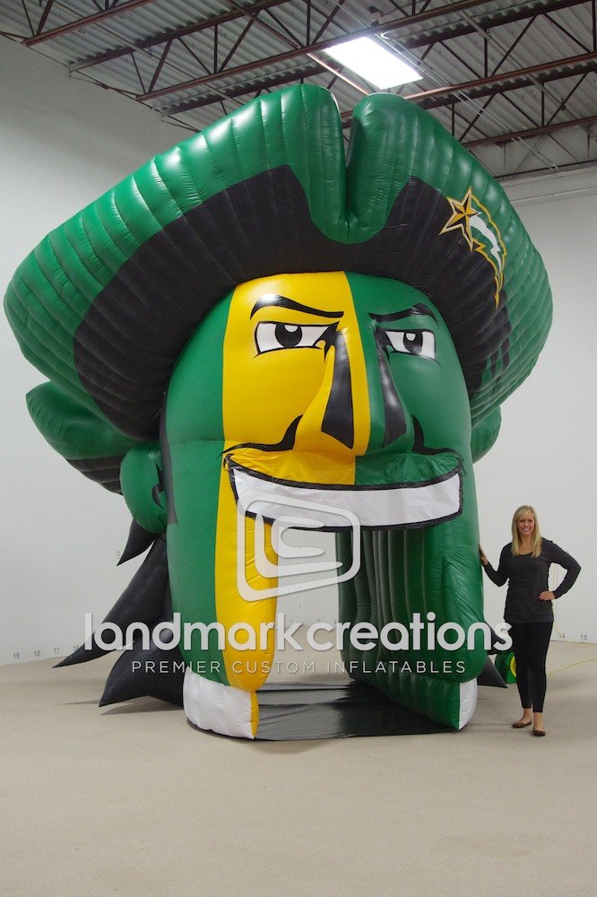 George Mason University's athletic department turned their mascot into a giant inflatable sports tunnel! Perfect for both indoor and outdoor use, this patriots tunnel revs up fans in the stands.