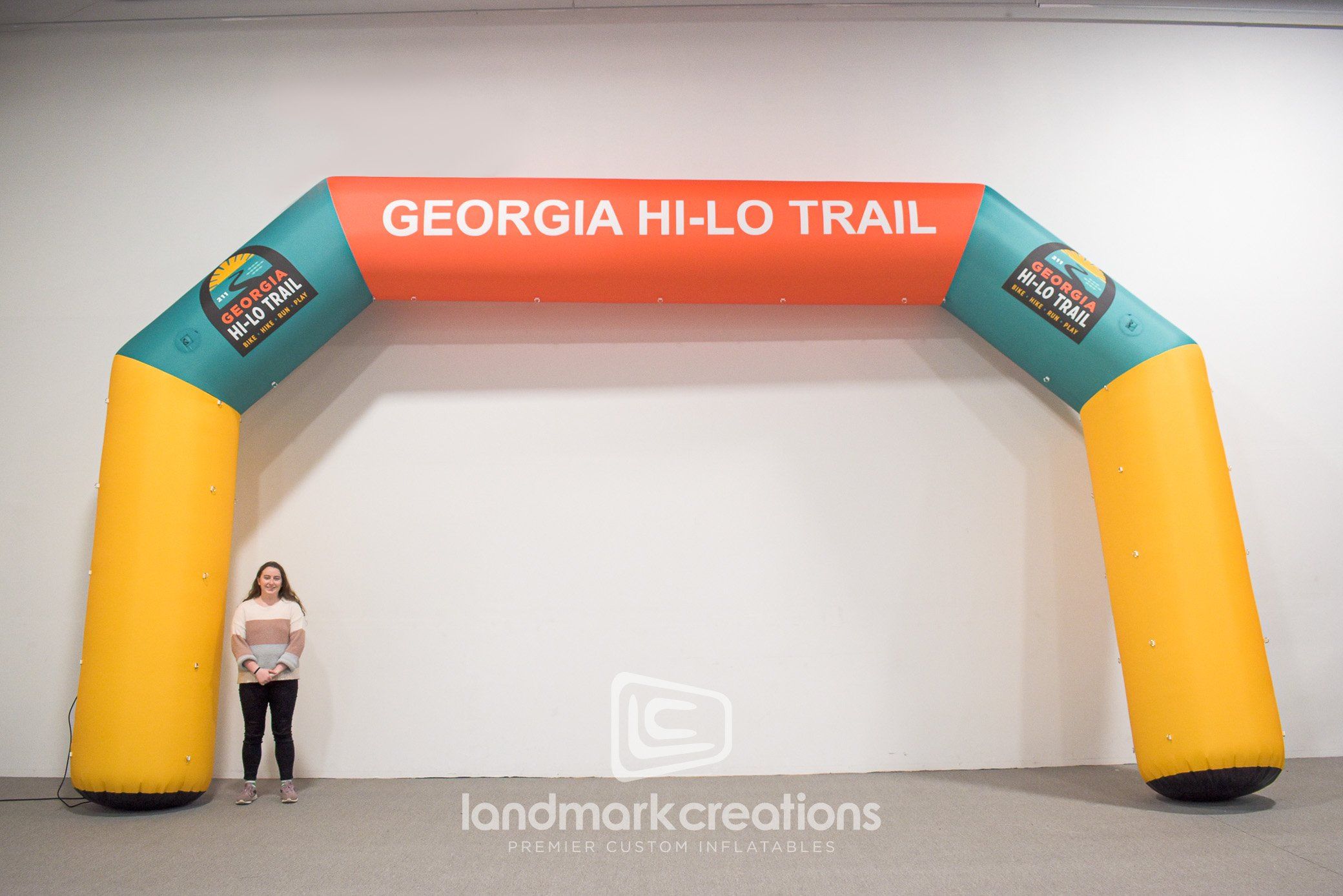 The Athens to Savannah Bike Ride is 3-day, 285-mile supported road ride from Athens to Savannah, GA with the goal of raising awareness for the proposed Georgia Hi-Lo Trail. The group's custom inflatable arch is used at the starting line and it features the "Georgia Hi-Lo Trail" Logos and messaging across the top. The sides of the starting line arch include attachment points for sponsor banners or custom messaging as needed.
