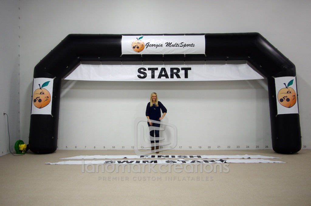 Georgia Multisports Productions, an event management company, specializes in triathlons and uses their custom inflatable archway to clearly mark start and finish lines. They also used it to mark a water event start line! Inflatable arches are easy to set up and manage on busy race days.