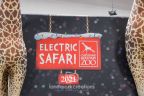 Giant, lovable giraffes flank each side of the Cheyenne Mountain Zoo's Inflatable billboard welcoming guests to the Electric Safari seasonal light show event.