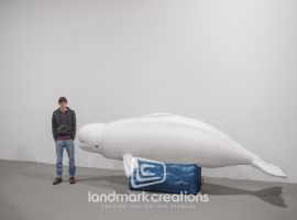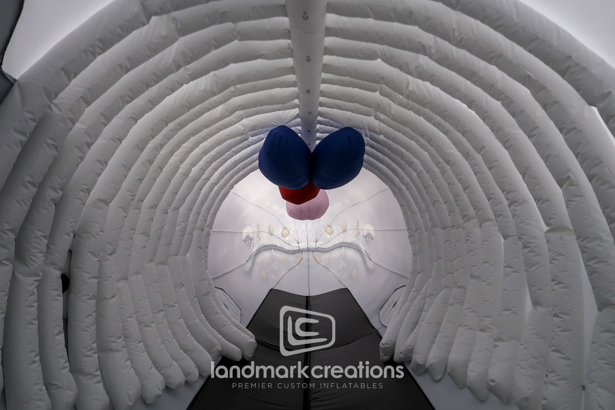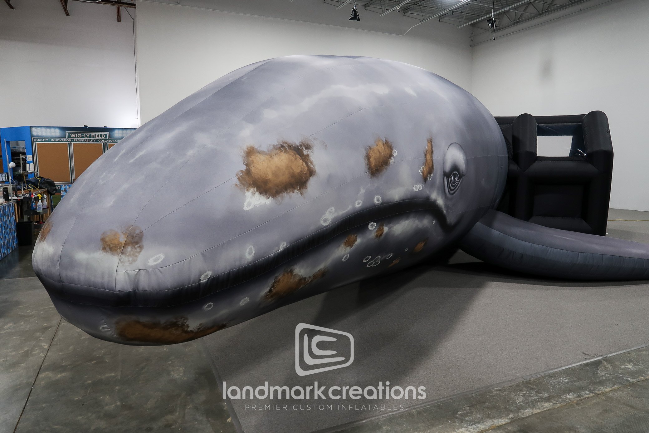 Colossal Fossils created this giant grey whale inflatable exhibit to take their educational tour on the road. Working with community sponsors, the organization is able to connect with community at sporting events, balloon festivals, and more.