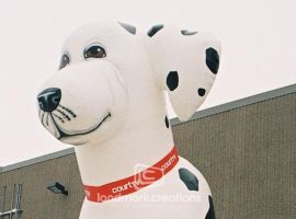 Happy Paws Pet Resort in Orlando connects with pet-lovers by inflating their giant puppy. Their giant inflatable Dalmatian, holding a newspaper for an added message area, advertises their establishment.