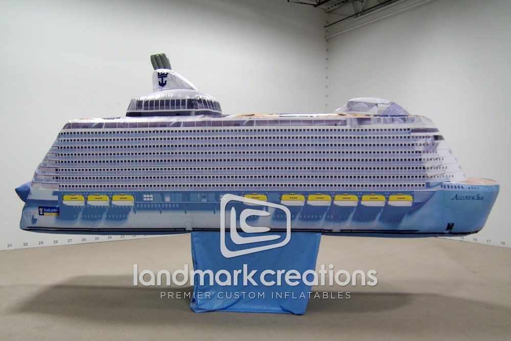 Used as a stage prop during the final episode of Oprah's Favorite Things in 2010, this giant inflatable Carnival cruise ship replica inflated on cue out of a giant jack-in-the-box replica in under 10 seconds.