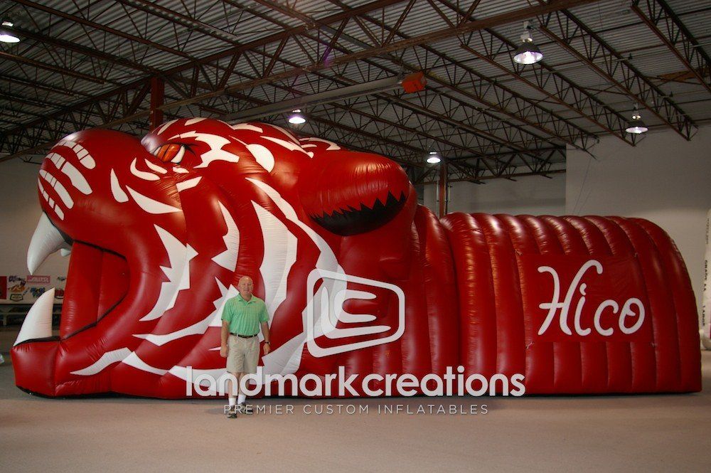 Hico High School increases school spirit at athletic events with their massive inflatable tiger head tunnel with added extension sports tunnel! Extension sports tunnels are perfect for larger sports teams and are detachable when a smaller tunnel is needed.