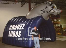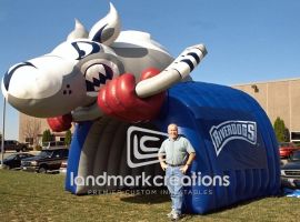 The Chicago Hounds, a minor league hockey team, use their dog-topped inflatable mascot tunnel to create anticipation before hockey games!