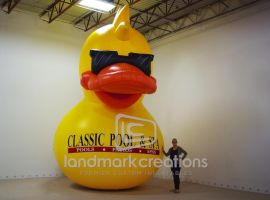 The 2006 Barney the Dinosaur Tour, Let's Go to The Toy Factory, used this inflatable rubber duck character as a stage prop.