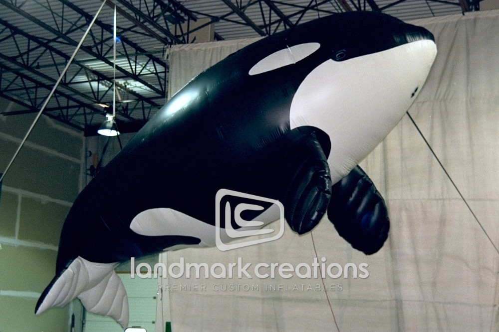 The Jean-Michael Cousteau's Ocean Futures Society, used this giant inflatable Keiko the killer whale replica to attract attention and help visitors find their trade show exhibits.