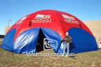 Dome-shaped inflatable AirTents give your business 360-degrees of promotional space, inside and out. KANG gets attention at military recruitment events and outdoor festivals with this red, white and blue military tent.