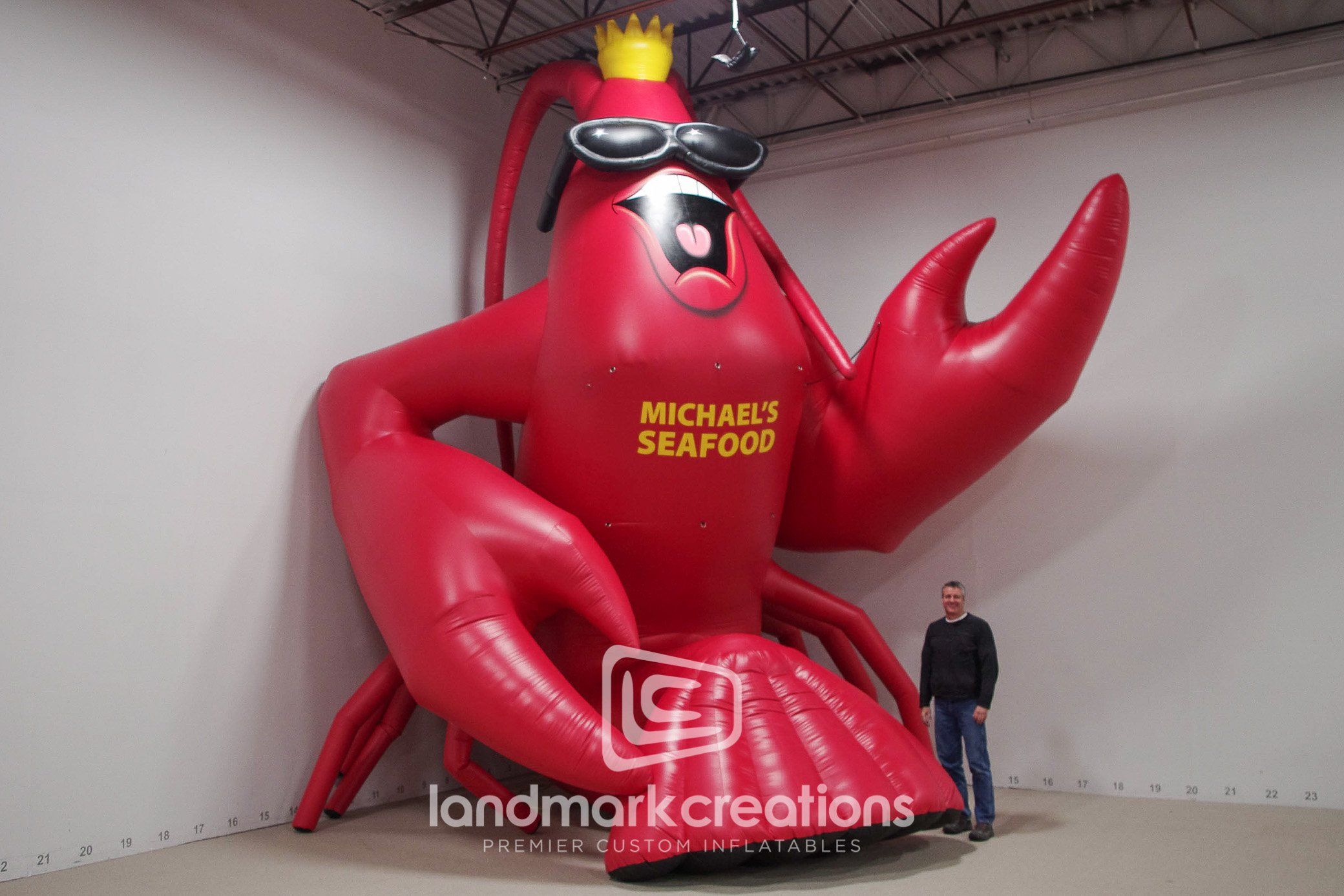 Michael’s Seafood in North Carolina inflates their massive King Crawfish for special retail events and promotions. Standing 20 feet tall, the giant inflatable crawfish instantly gets people’s attention.