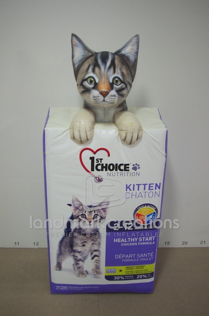 1st Choice inflated this adorable kitty in their pet food bag at a variety of pet events, veterinary clinics and pet supply stores. The inflatable attracts plenty of attention!