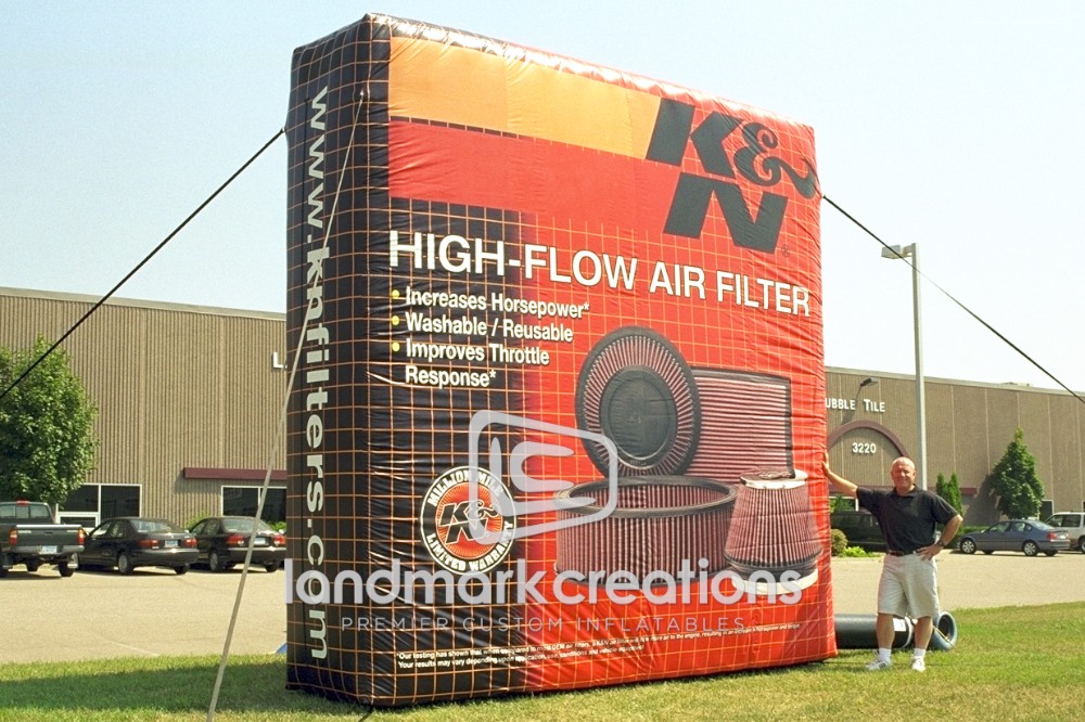 K&N turned their popular air filter into a massive custom inflatable product replica to attract attention during special events and automotive shows.