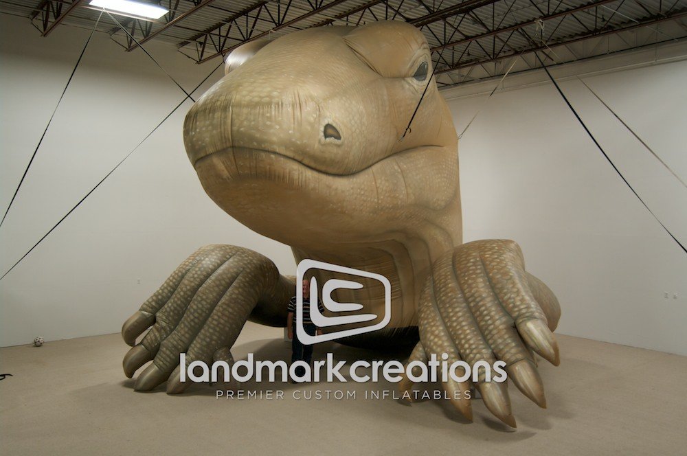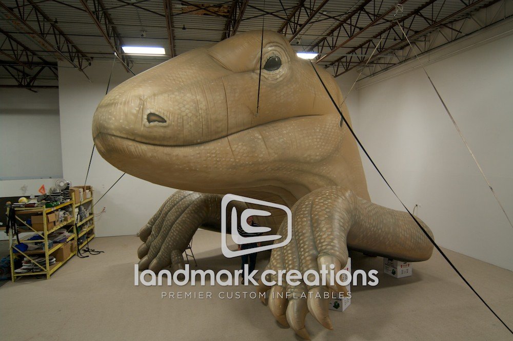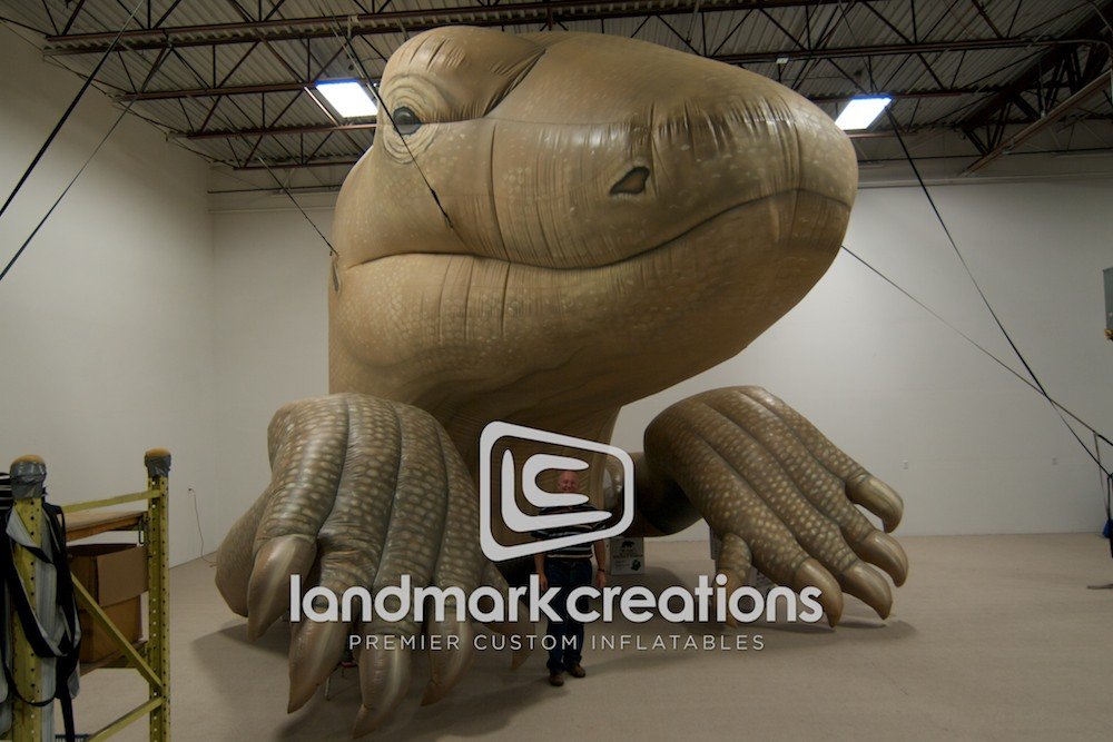 This giant inflatable Komodo dragon peered over the Virginia Aquarium & Marine Science Center to attract attention and visitors to their new Restless Planet exhibit.