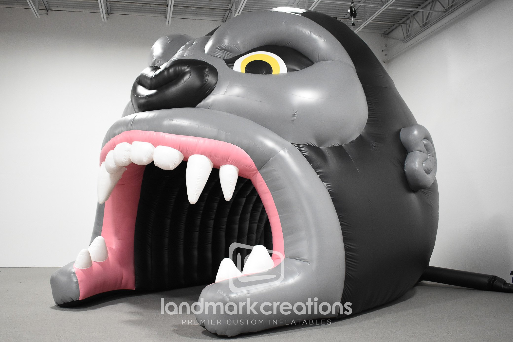Seasonal retailer, Hale Fireworks, uses a giant inflatable gorilla head entrance tunnel to promote their popular "Kong" line of firework products. Inflatable entrance tunnels can draw attention to temporary retails spaces while offering a unique photo opp for shoppers. Inflatable displays pack small, so they're also very easy to transport and store between seasons.