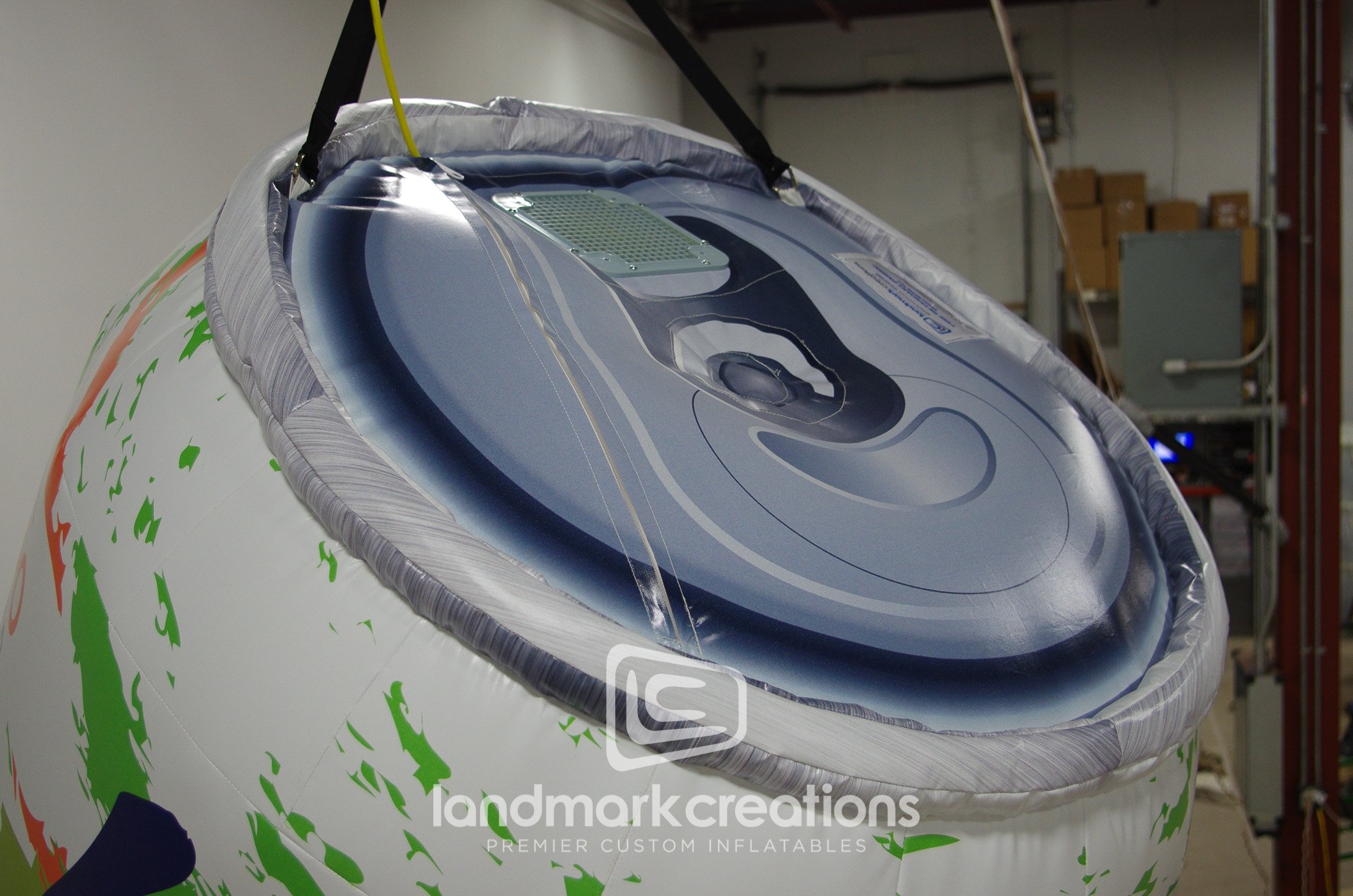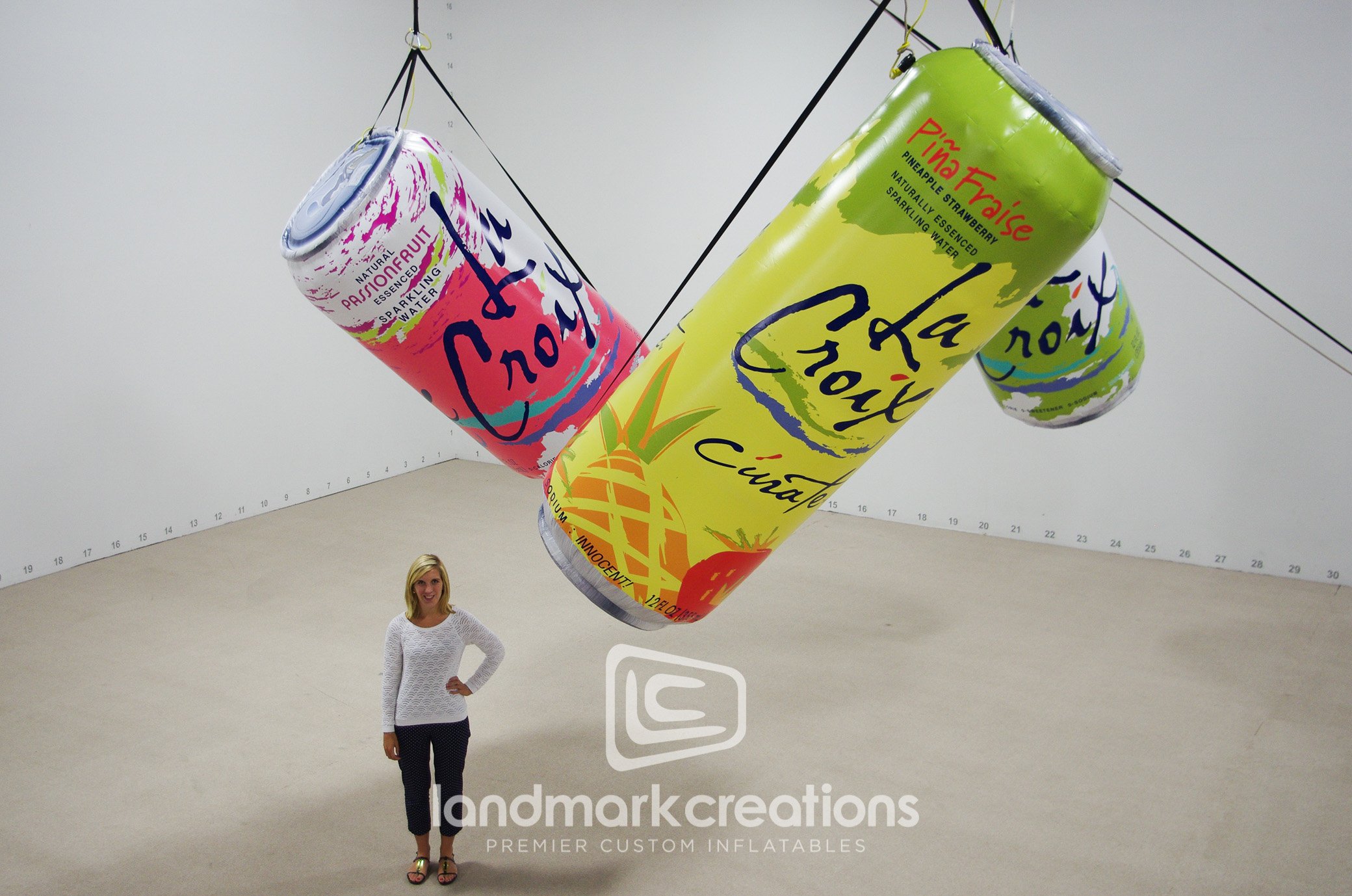 There are few cans as instantly recognizable as that fizzy, fruity favorite loved by hipsters and homemakers alike, LaCroix. So when Nationwide Displays were tasked with giving their trade show booth a facelift, they decided to use that to their advantage, by hanging giant inflatable replicas of the cans above the booth! The cans are instant eye-catchers, and the internal electric blowers wired into the ceiling mean guests don’t have to deal with cords or excessive noise.