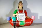 Crystal Tones, a crystal singing bowls manufacturer, uses their inflatable Lakshmi, the Hindu goddess of wealth, to attract the attention of potential distributors at trade shows like the Globe-X Gem Show.