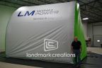 LM Wind Power Service & Logistics, a leading supplier to the wind turbine industry, built trust with customers through face-to-face marketing at events using this 17-foot custom inflatable q-hut.