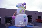 Looking for a giant visual for your winter holiday event or promotion? This giant inflatable snowman made of toasted marshmallows, complete with jellybean buttons and earmuffs is just the thing. Inflatables are perfect for festivals and events because they're easy to set up, store, and transport between locations.