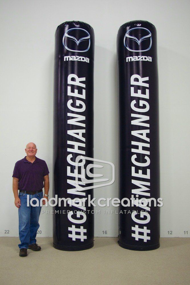 Inflatable pylons with an actionable message helped Mazda create buzz for their new 2014 Mazda3. By placing these inflatable pylons at racing events Mazda sparked conversation and encouraged attendees to tweet using #GAMECHANGER to promote the All-New Mazda3.
