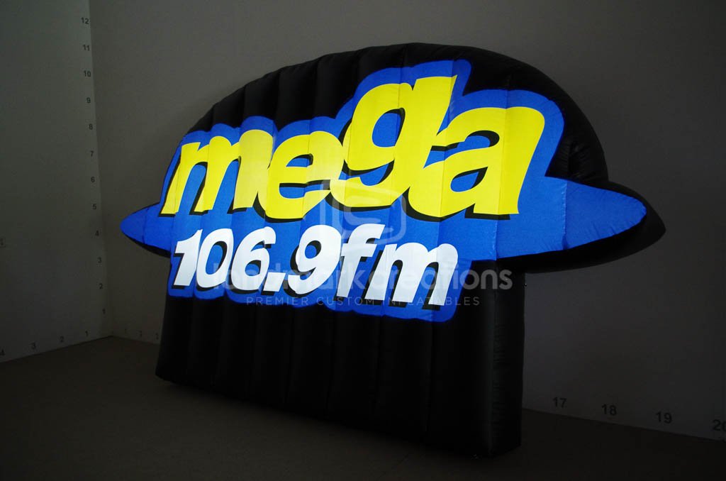Need a creative way to advertise during the day and at night? Mega 106.9 FM uses an internal light system in their inflatable display for high visibility at evening events.