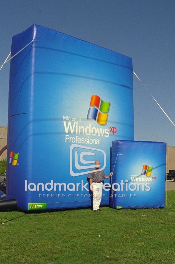 Boost your product sales with a custom inflatable replica! Microsoft promotes their Windows XP Professional with these giant inflatable package replicas at marketing events.