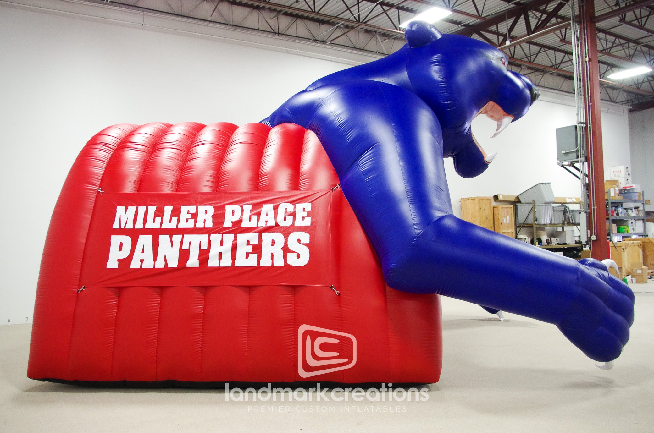 Miller Place Union High uses their custom inflatable panther tunnel for football games, graduation ceremonies and school events. Custom inflatable sports tunnels are a great way to boost school spirit and add a splash of visual excitement to any school event. Because they pack small, inflatables are also easy to set up, transport and store between events.