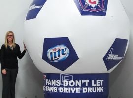 TEAM Coalition, Budweiser and el Jimador Tequila teamed up to promote the Cascadia Responsibility Challenge with this custom inflatable soccer ball. The competition among three MLS Clubs: Vancouver Whitecaps FC, Seattle Sounders FC and Portland Timbers promotes responsible drinking at sporting events.
