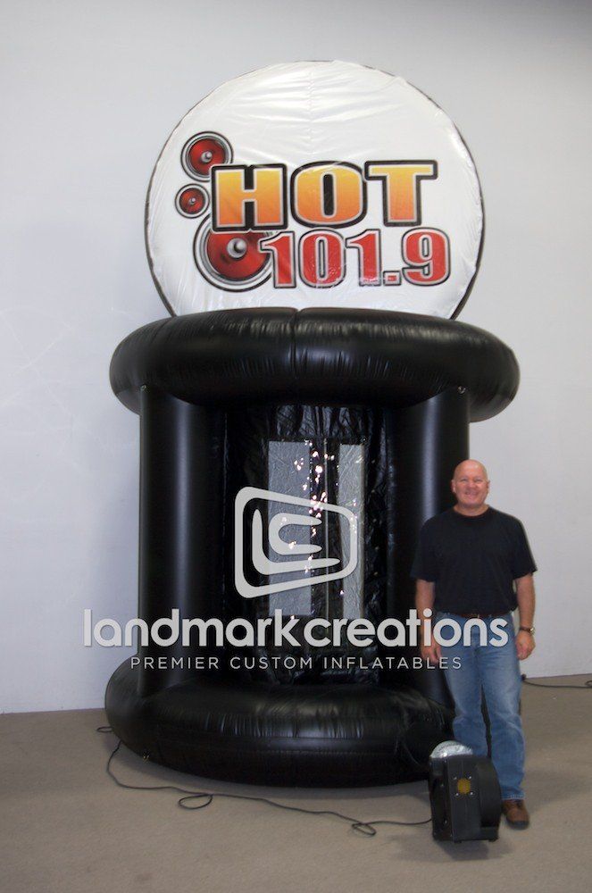 Encourage crowd participation with custom inflatable air booths like this one for Hot 101.9 FM. Inflate the money machine, fill it with dollars, coupons or tickets, turn on the fan and watch the fun begin.