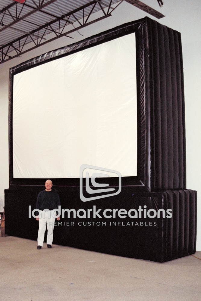 This custom inflatable movie screen is supported by a black pedestal that doubles as a message or advertising area. Perfect for companies hosting or sponsoring social events! Commercial Grade: Custom Built to Order.