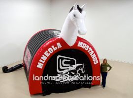 Looking for a way to excite fans in the stands? Inflate a custom sports tunnel! This inflatable mustang topped sports tunnel for Stockdale High School gets fans on their feet as athletes stampede the field or court.