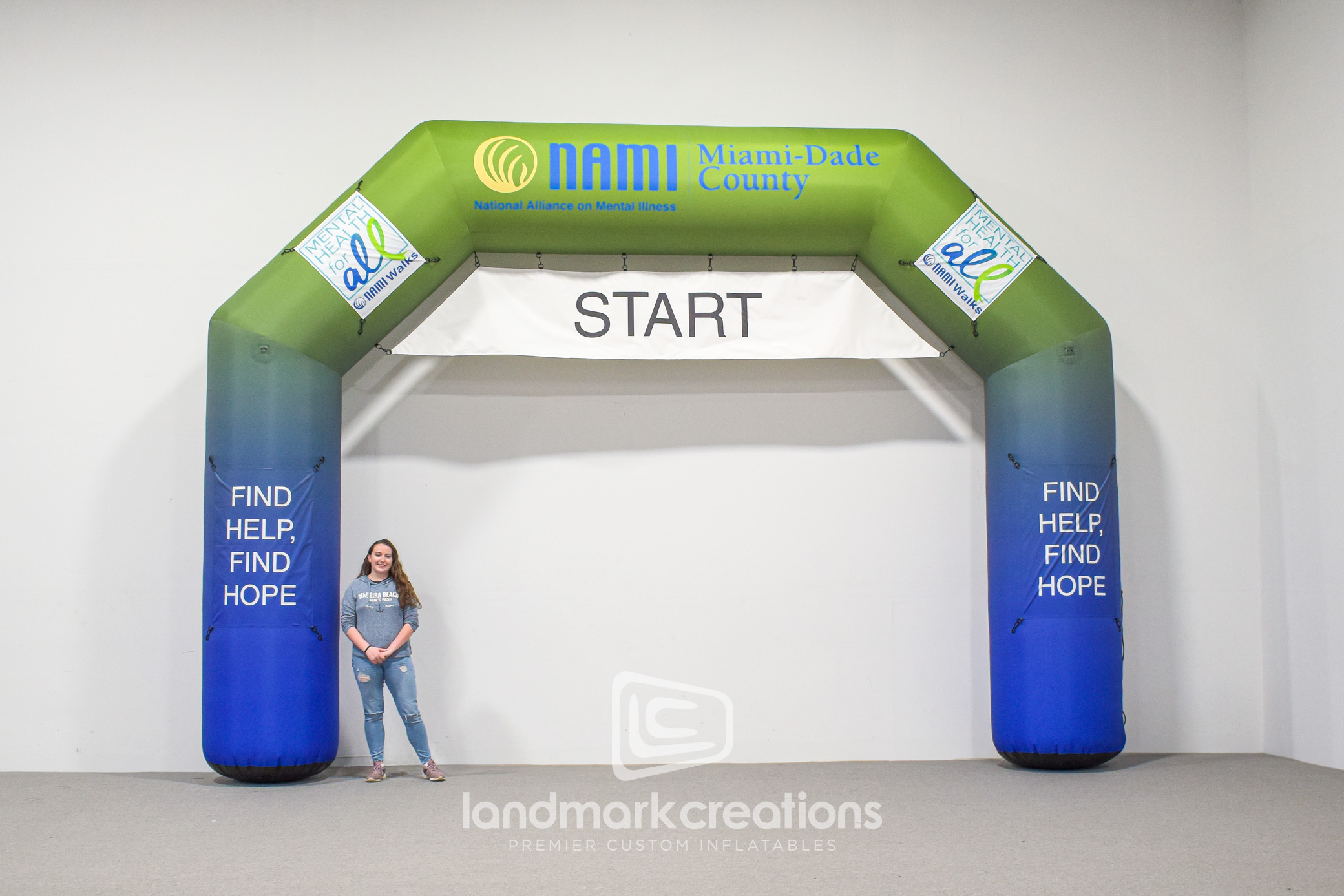 The NAMI Arch (Product ID: L8019), designed for NAMI Miami-Dade County, creates a welcoming entrance for mental health awareness events. With a double-sided hanging crossbar banner and vibrant leg banners, this 15-foot arch captures attention, delivering both visual impact and a meaningful message. Perfect for racing events and outdoor gatherings, it’s an ideal inflatable to raise awareness and engage participants.