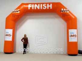 The upstate New York chapter of the Multiple Sclerosis Society boosts local exposure of their events by inflating this bright orange inflatable start / finish line archway.