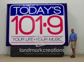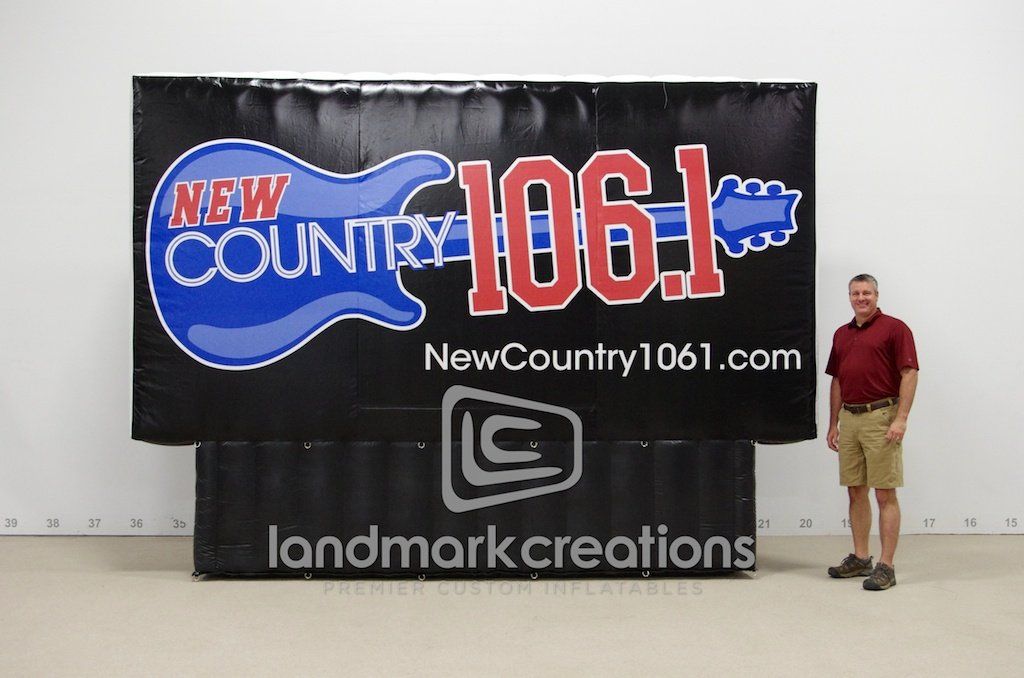 This giant inflatable display rocks at concerts and mobile marketing tours to promote radio station, New Country 106.1 FM. The custom inflatable billboard is a unique way to advertise and draw attention.
