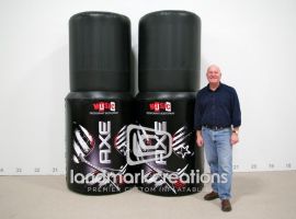 With electronic cigarettes becoming more popular Vapor-Blends started using inflatables to stand out from competitors. This inflatable replica of their E-Juice bottle attracts attention at trade shows and retail locations. Thanks to the internal blower system this replica is easy to inflate - simply plug it in!